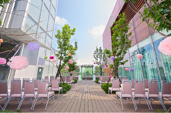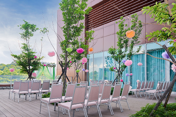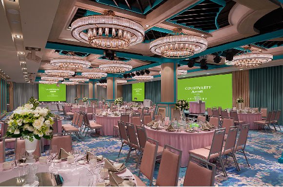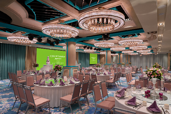台北六福万怡酒店 コートヤード タイペイ は、ユニーク、クリエイティブというブランド理念を守り、カラフルウエディングをテーマに、さらに六福傘下のライフスタイルコンセプトショップ エリートコンセプト 一福荘園特有のワンストップ婚礼サービスと融合し、オリジナルの「婚礼フリーセレクトパック」プランを提供しています。新郎新婦の皆様に様々な各種の趣向を凝らしたウエディングテーマプランをお選びいただき、また、空中ディスプレイによるインタラクティブスタイルの新郎新婦パフォーマンスを提供し、来賓の皆様にバーチャルとリアルが交錯する素晴らしいステージを体験していただけます。披露宴のお食事も、中華、西洋スタイルの全く新しいコンセプトの料理をご用意し、多様なお食事で来賓の皆様にご満足いただけます。
