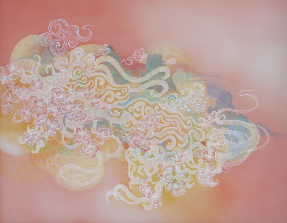 在象徵女性特有的柔情髮絲纏繞過後,《遊雲記》以未知旅途中從未預見的驚喜為題,於雲端之巔形成了迷宮似的繁複線條,這朵朵隱含祥瑞寓意的吉祥雲圖,是行經人間中的一縷煙痕、抑或作者引以自喻的遊雲,呈現出奇幻飄渺的仙境朦朧之美。