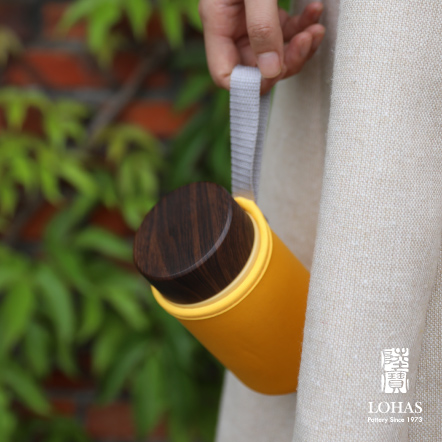 可當水杯、茶葉罐或點心罐等, 新骨瓷材質,內釉活水陶淨化水質, 胡桃木紋杯蓋精細,附上隨身布套方便攜帶。