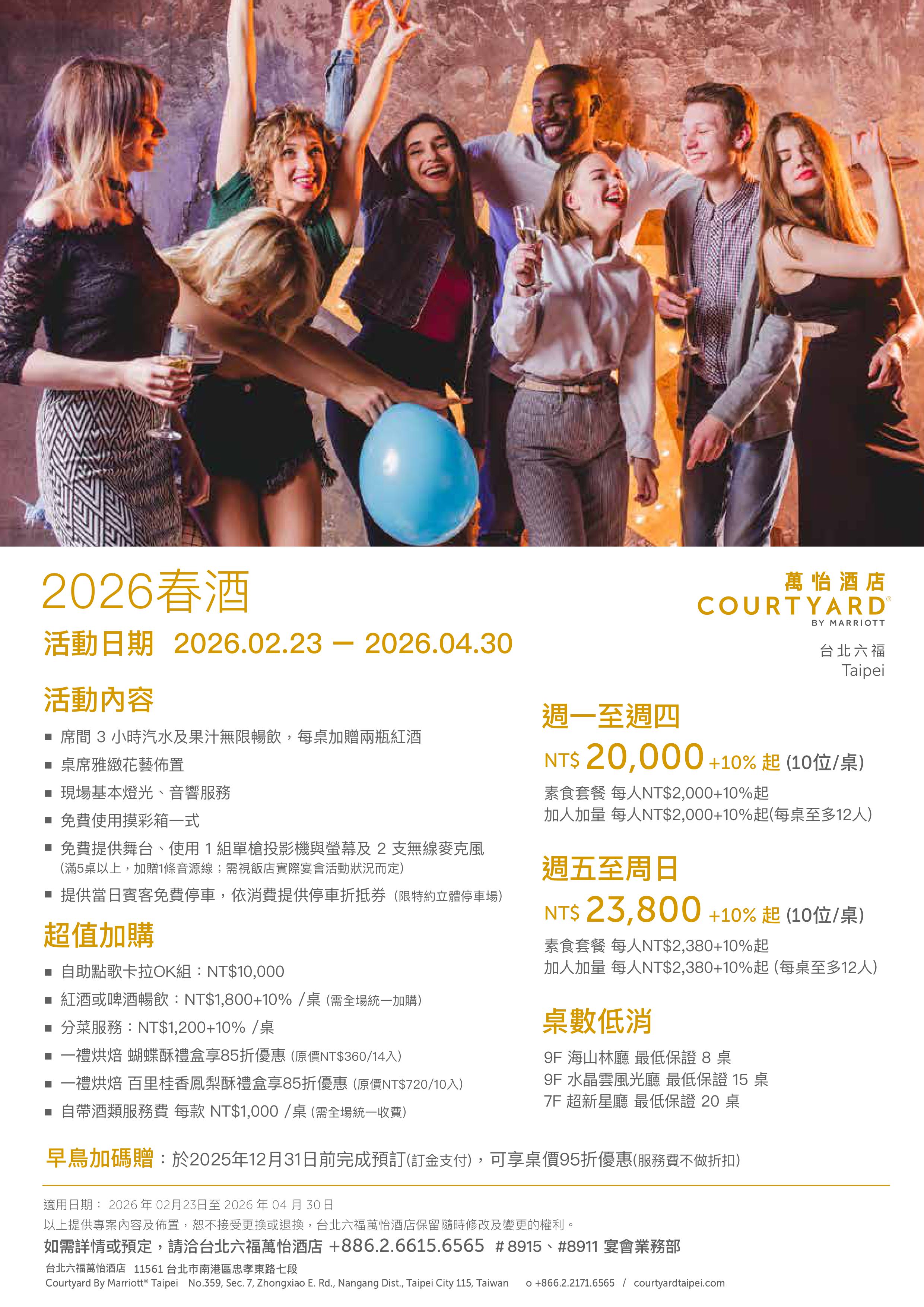 請撥打專線:02-6615-6565 宴會業務部 #8915 #8911