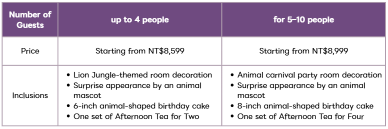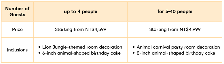 2. After confirming your room reservation, please contact the Leofoo Resort Events Department to book your birthday package. Reservation hotline:+886-547-5365 #2951