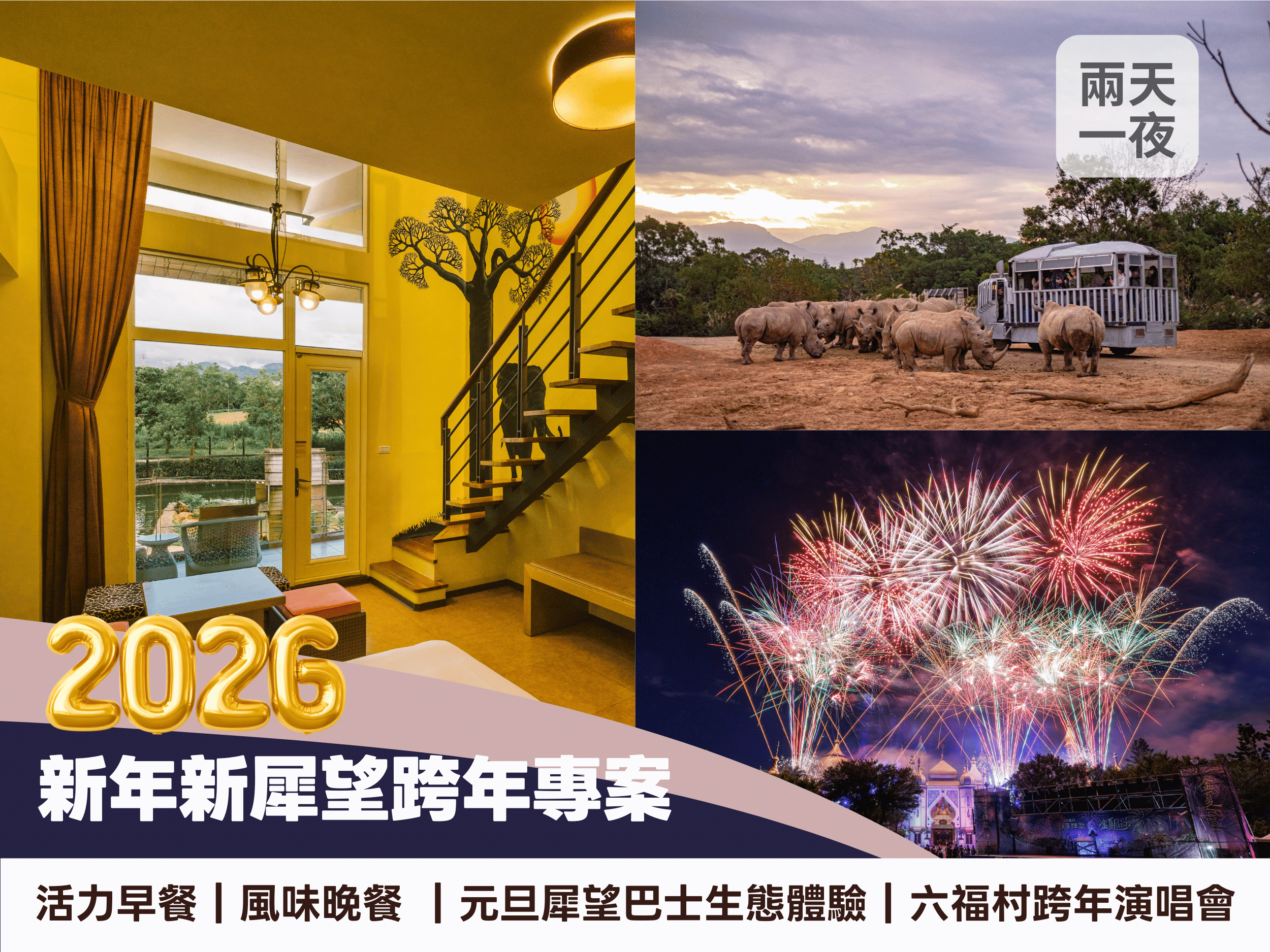 1. 加人加價:3歲以下免費;3歲以上每位加價NT$3,000+10% (含早餐+晚餐+六福村手環+動物體驗二選一1人次)
