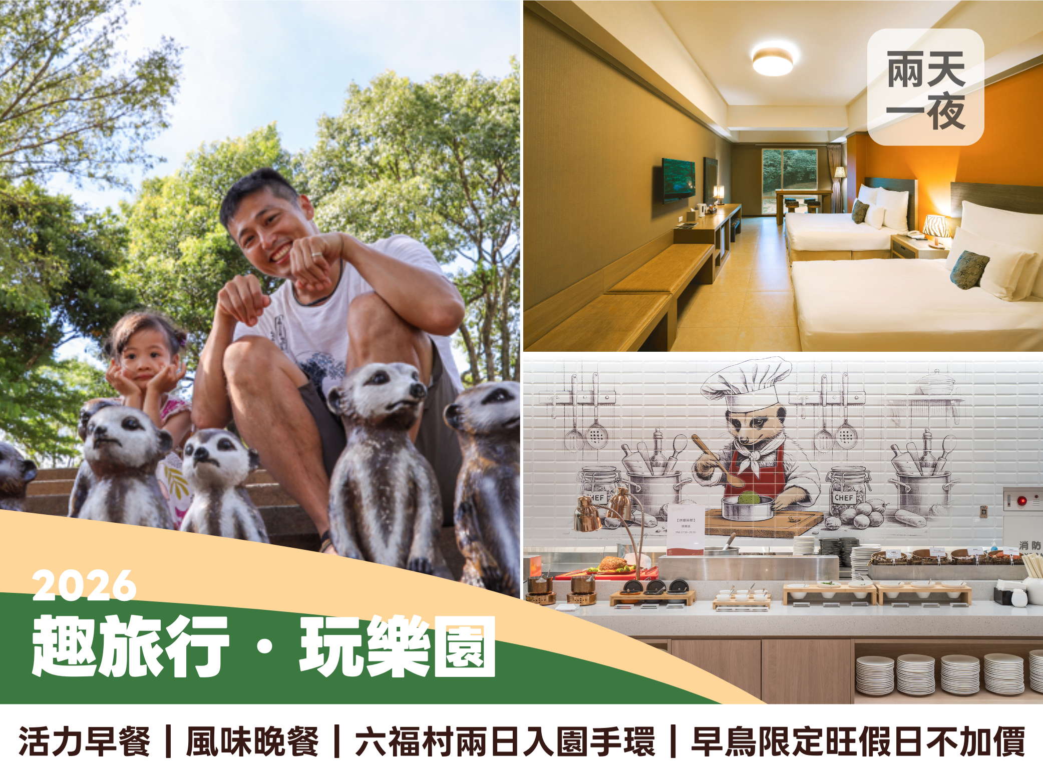 2026/03/02-03/03時逢台電年度電力檢修,六福村主題遊樂園休園2日,如您預訂2026/03/01入住,僅可於第一天(入住當日)進入六福村,敬請見諒。