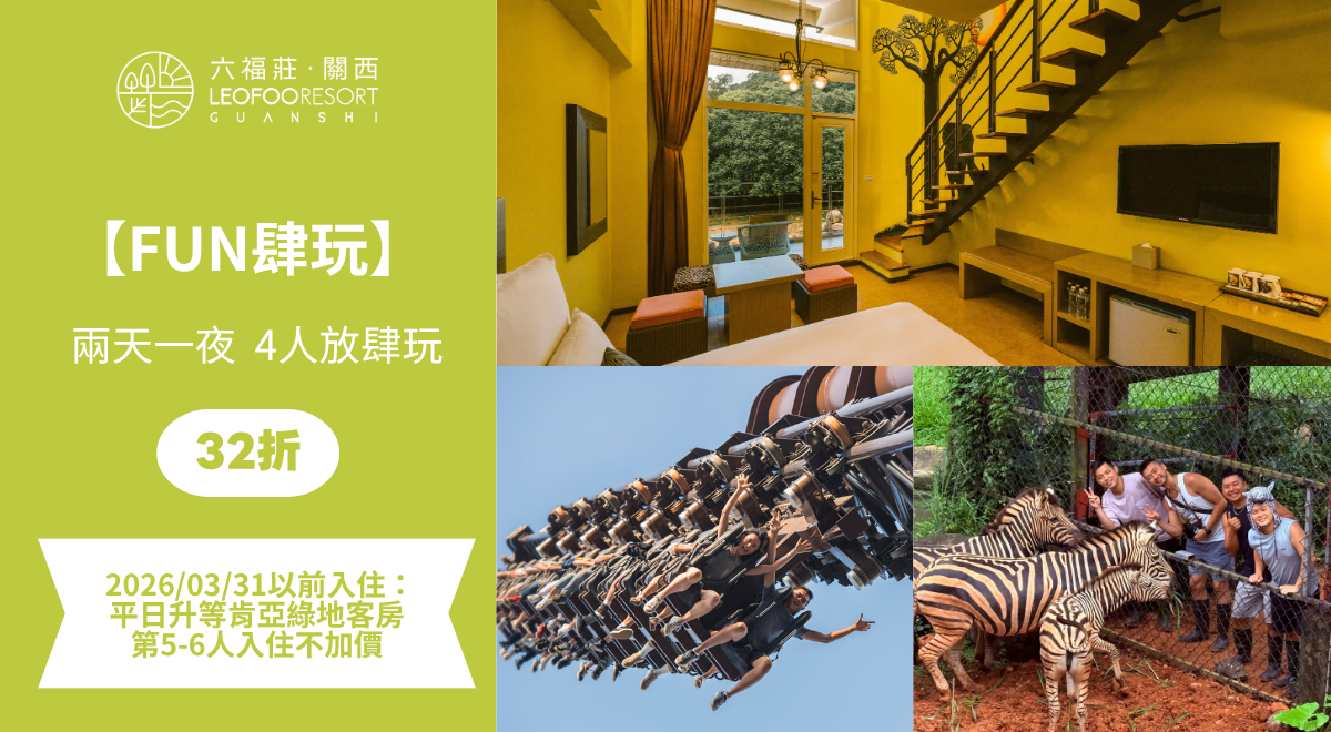 【關西六福莊 晚鳥FUN肆玩】4人 兩天一夜住宿專案