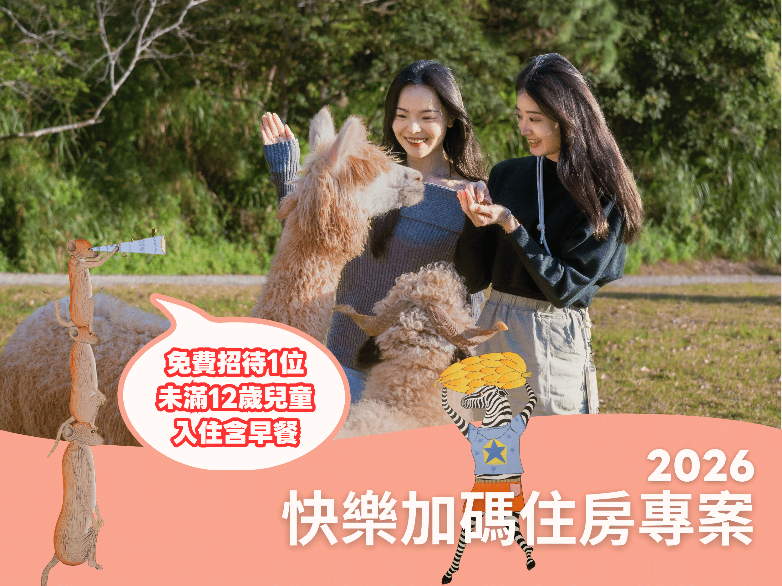 ●每房含非洲探險遊戲島體驗&淺山農場生態導覽